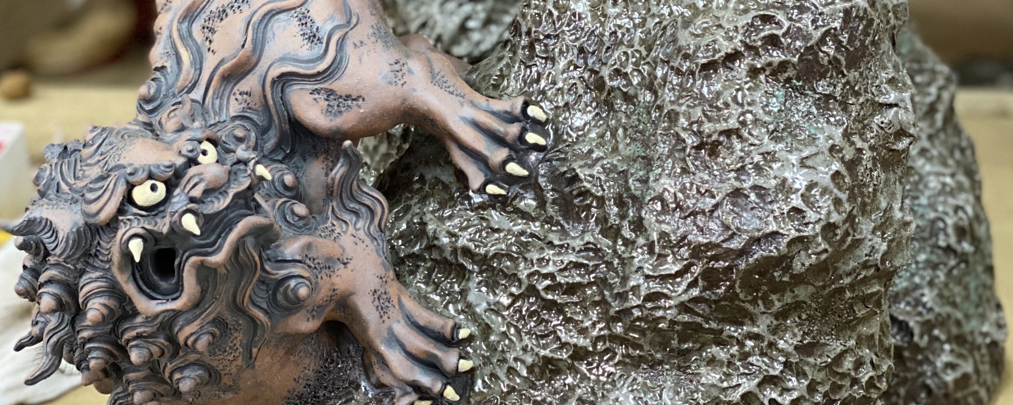 新作シーサーが登場です。大型なので大迫力!丁寧な手捻りで美しい作品に仕上がっています。