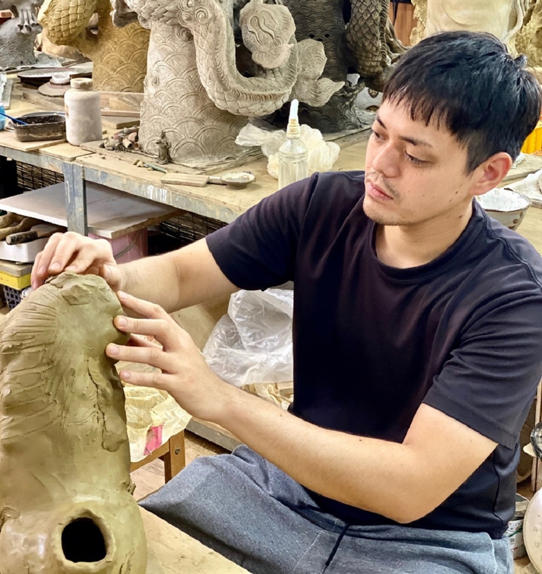 平成6年6月生れ。大学3年から、父・光雄のもとでシーサー作りを学ぶ。卒業後は本格的にシーサーや龍などを作成する。